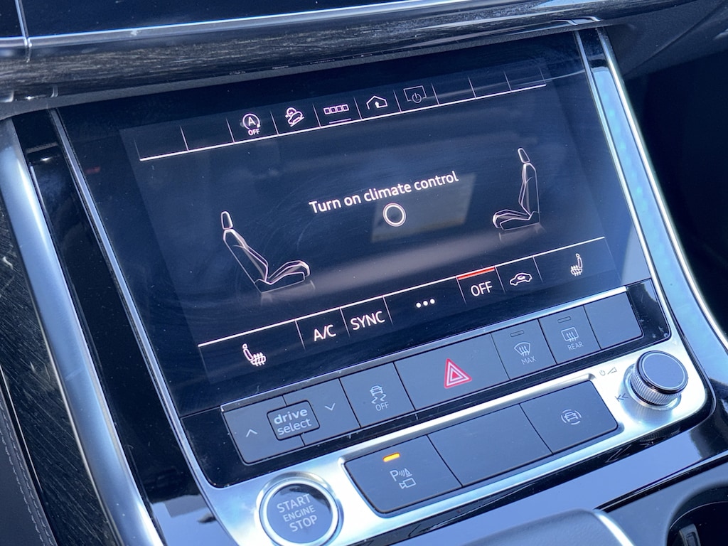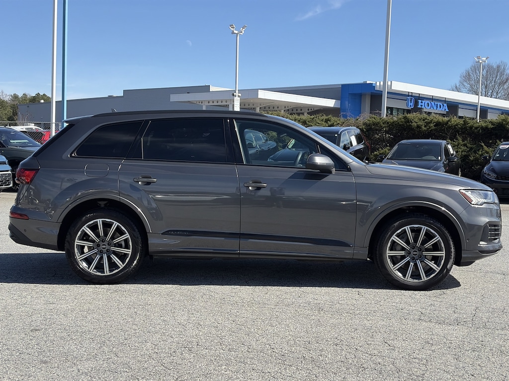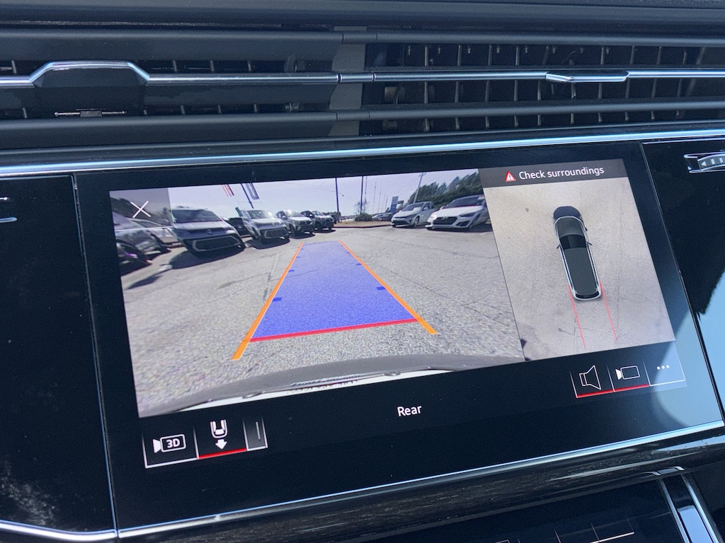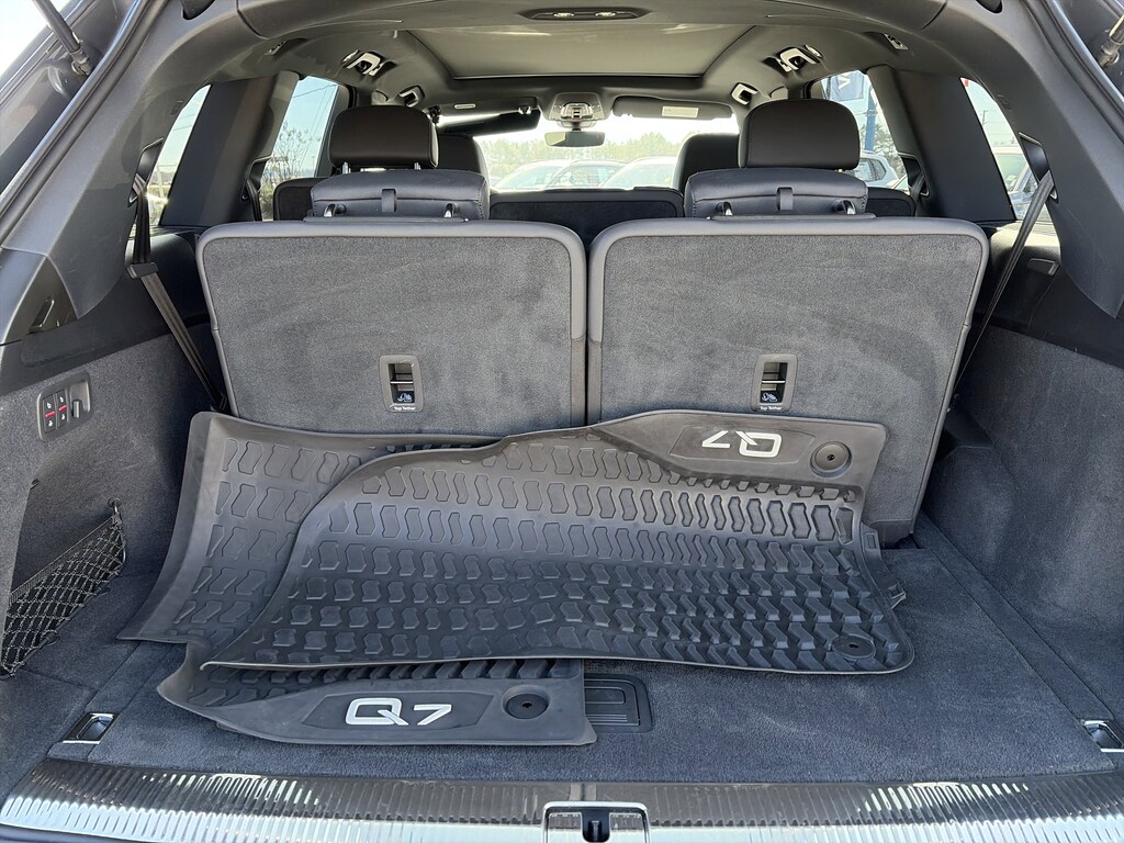PRICED UNDER MARKET, DEALER INSPECTED AND SERVICED, Certified for extended service contract coverage, 10 Speakers, 3.76 Axle Ratio, 3rd row seats: bench, 4-Wheel Disc Brakes, ABS brakes, Adaptive Cruise Assist w/Lane Guidance, Air Conditioning, Alloy wheels, AM/FM radio: SiriusXM w/ 360L, Audi Beam Rings, Audi Guard All-Weather Mats, Audi Phone Box w/Wireless Charging, Auto High-beam Headlights, Auto-dimming door mirrors, Auto-dimming Rear-View mirror, Automatic temperature control, Bang & Olufsen Premium Sound System w/3D Sound, Black Audi Rings & Badges, Black Cloth Headliner, Black Door Blades, Black Front & Rear Bumpers, Black Grille, Black Optic Package, Black Roof Rails, Black Window Surrounds, Brake assist, Bumpers: body-color, Compass, Convenience Package, Delay-off headlights, Driver door bin, Driver vanity mirror, Dual front impact airbags, Dual front side impact airbags, Electronic Stability Control, Emergency communication system: Audi connect CARE, Exterior Parking Camera Rear, Four wheel independent suspension, Front anti-roll bar, Front Bucket Seats, Front Center Armrest, Front dual zone A/C, Front fog lights, Front reading lights, Fully automatic headlights, Garage door transmitter: HomeLink, Genuine wood door panel insert, Heated door mirrors, Heated Front Bucket Seats, Heated front seats, Heated Steering Wheel, Illuminated Door Sills, Illuminated entry, Leather Seating Surfaces, Leather Shift Knob, Leather steering wheel, Low tire pressure warning, Matrix-Design LED Headlights w/DRL Signature, Memory seat, Navigation system: Audi MMI Navigation plus with Touch Response, Occupant sensing airbag, Outside temperature display, Overhead airbag, Overhead console, Panic alarm, Passenger door bin, Passenger vanity mirror, Power door mirrors, Power driver seat, Power Liftgate, Power moonroof: Panoramic, Power passenger seat, Power steering, Power windows, Premium Plus Package, Privacy Trunk Cover, Radio data system, Radio: Audi Sound System, Rain sensing wipers, Rear air conditioning, Rear anti-roll bar, Rear fog lights, Rear reading lights, Rear seat center armrest, Rear side impact airbag, Rear window defroster, Rear window wiper, Reclining 3rd row seat, Remote keyless entry, Roof rack: rails only, Security system, Speed control, Speed-sensing steering, Split folding rear seat, Spoiler, Steering wheel memory, Steering wheel mounted audio controls, Tachometer, Telescoping steering wheel, Tilt steering wheel, Topview Camera System, Tow Hitch Receiver, Towing Package, Traction control, Trip computer, Turn signal indicator mirrors, Variably intermittent wipers, Wheels: 19" 5-Arm-Star Design, Wheels: 20" 10-Spoke-Star Design.
