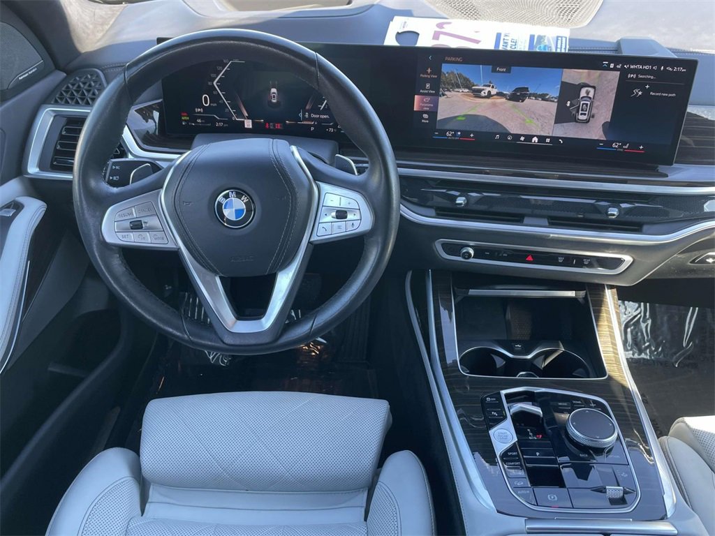 PRICED UNDER MARKET, DEALER INSPECTED AND SERVICED, Certified for extended service contract coverage, 10 Speakers, 3.64 Axle Ratio, 3rd row seats: split-bench, 4-Wheel Disc Brakes, ABS brakes, Adaptive suspension, Air Conditioning, Alloy wheels, AM/FM radio: SiriusXM with 360L, AM/FM Stereo, Apple CarPlay & Android Auto Compatibility, Apple CarPlay Compatibility, Auto High-beam Headlights, Auto tilt-away steering wheel, Auto-dimming door mirrors, Auto-dimming Rear-View mirror, Auto-leveling suspension, Automatic temperature control, BMW Assist eCall, BMW TeleServices, Brake assist, Bumpers: body-color, Compass, Connected Package Pro, ConnectedDrive Services, Delay-off headlights, Driver door bin, Driver vanity mirror, Dual front impact airbags, Dual front side impact airbags, Electronic Stability Control, Emergency communication system: BMW Assist eCall, Exterior Parking Camera Rear, Four wheel independent suspension, Front anti-roll bar, Front Bucket Seats, Front Center Armrest, Front dual zone A/C, Front reading lights, Fully automatic headlights, Garage door transmitter, Genuine wood console insert, Genuine wood dashboard insert, Genuine wood door panel insert, Head restraints memory, Heads-Up Display, Heated door mirrors, Heated front seats, Heated Multi-Contour Seats, Heated steering wheel, Hi-Fi Sound System, Illuminated entry, Knee airbag, Leather steering wheel, Live Cockpit Pro, Low tire pressure warning, Memory seat, Navigation system: BMW Maps Navigation, Occupant sensing airbag, Outside temperature display, Overhead airbag, Panic alarm, Passenger door bin, Passenger vanity mirror, Personal eSIM 5G, Power adjustable front head restraints, Power door mirrors, Power driver seat, Power Front Seats, Power moonroof: Panorama, Power passenger seat, Power steering, Power windows, Radio data system, Rain sensing wipers, Rear air conditioning, Rear anti-roll bar, Rear dual zone A/C, Rear reading lights, Rear seat center armrest, Rear window defroster, Rear window wiper, Reclining 3rd row seat, Remote keyless entry, Security system, Sensafin Upholstery, SiriusXM w/360L & 1 Year Platinum Plan Subscription, Speed control, Speed-sensing steering, Speed-Sensitive Wipers, Split folding rear seat, Spoiler, Sport steering wheel, Steering wheel memory, Steering wheel mounted audio controls, Tachometer, Telescoping steering wheel, Tilt steering wheel, Traction control, Trip computer, Turn signal indicator mirrors, Variably intermittent wipers, Wheels: 21" x 9.5" Y-Spoke Bi-Color, Wireless Charging Device.