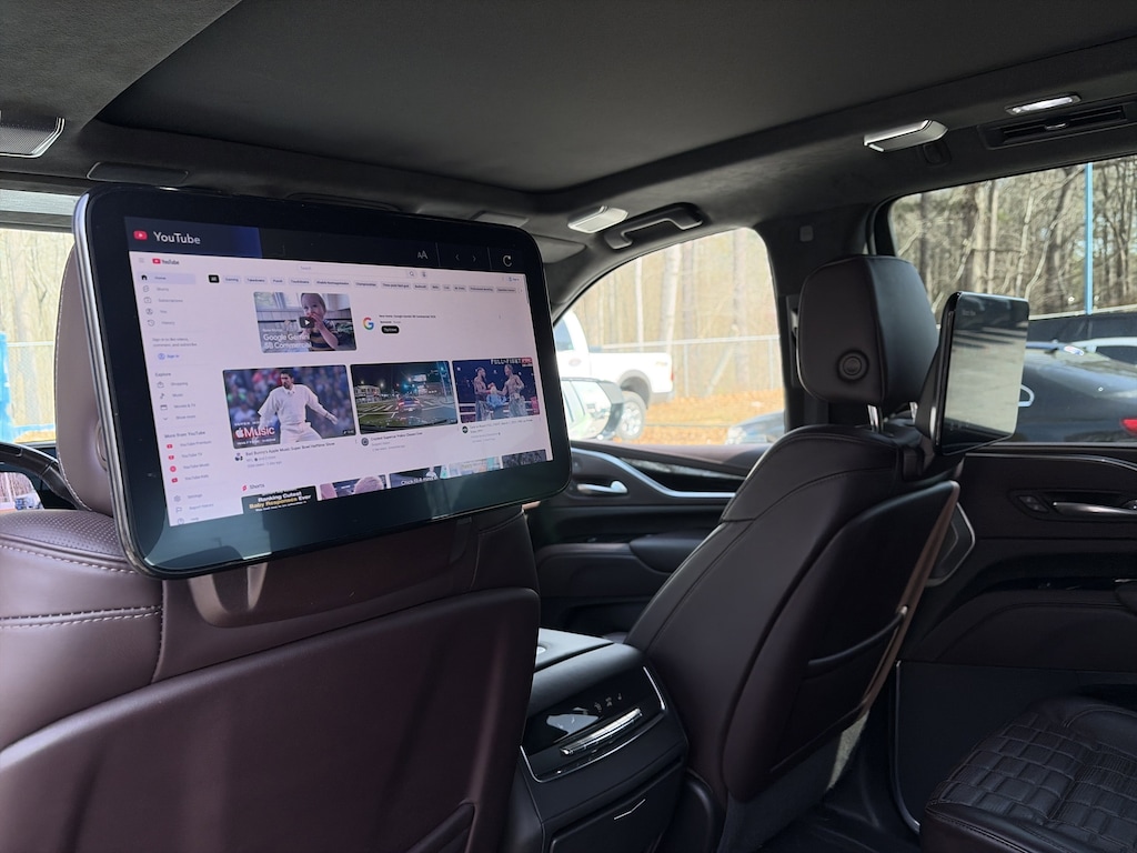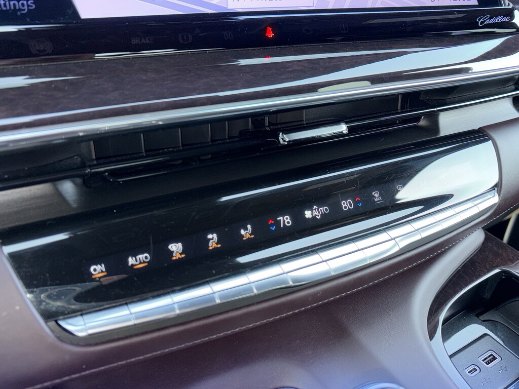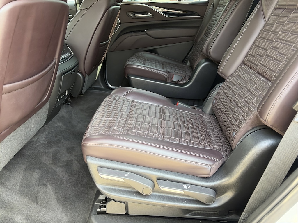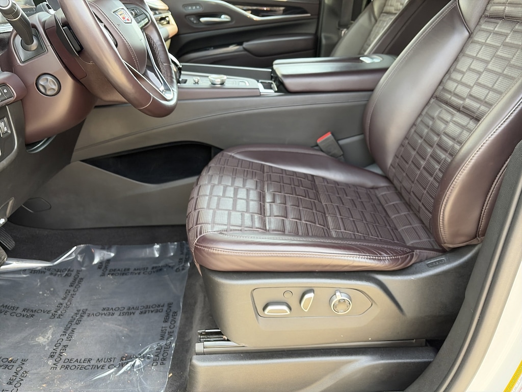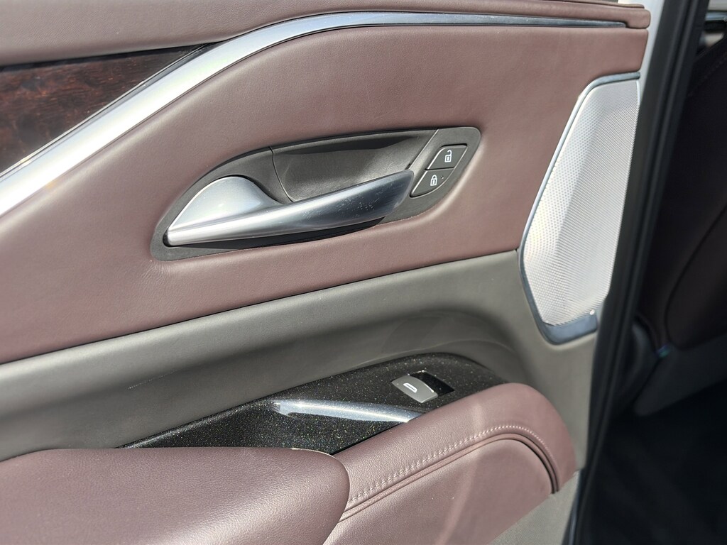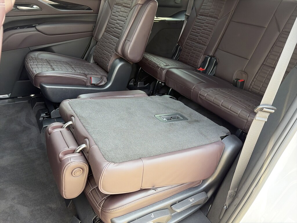 PRICED UNDER MARKET, DEALER INSPECTED AND SERVICED, Certified for extended service contract coverage, AWD, Dark Auburn With Jet Black Accents Leather, 16.9" Diagonal OLED Infotainment Screen, 2-Presets Memory For Driver Seat Adjuster, 3 Years of OnStar & Connected Services Plan, 3.23 Axle Ratio, 3rd row seats: split-bench, 4-Way Power Driver Lumbar Seat Adjuster, 4-Way Power Front Passenger Lumbar Seat Adjuster, 4-Wheel Disc Brakes, 8-Way Power Driver Seat Adjuster, 8-Way Power Front Passenger Seat Adjuster, A/V remote, ABS brakes, Adaptive Cruise Control, Adaptive suspension, Air Conditioning, Air Ride Adaptive Suspension, AKG Studio Reference 36-Speaker Audio System, Alloy wheels, AM/FM radio: SiriusXM with 360L, Apple CarPlay/Android Auto, Audio memory, Auto High-beam Headlights, Auto tilt-away steering wheel, Auto-dimming door mirrors, Auto-dimming Rear-View mirror, Automatic Seat Belt Tightening, Automatic temperature control, Body-Color Door Handles, Brake assist, Bumpers: body-color, Cat-Back Performance Exhaust (LPO), Compass, Delay-off headlights, Door auto-latch, Door Lock & Latch Shields, Driver door bin, Driver vanity mirror, Dual front impact airbags, Dual front side impact airbags, Electronic Limited-Slip Differential, Electronic Stability Control, Emergency communication system: OnStar and Cadillac connected services capable, Enhanced Automatic Emergency Braking, Enhanced Automatic Parking Assist, Exterior Parking Camera Rear, Floor Console w/Covered Storage, Four wheel independent suspension, Front anti-roll bar, Front Auxiliary 12-volt Power Outlet, Front Bucket Seats, Front Center Armrest w/Storage, Front dual zone A/C, Front License Plate Bracket, Front reading lights, Full Semi-Aniline Leather Seat Trim, Fully automatic headlights, Garage door transmitter, Genuine wood console insert, Genuine wood dashboard insert, Genuine wood door panel insert, Glass Breakage Sensor, Gloss Black Escalade Nameplate (LPO), HD Radio, Headphones, Heads-Up Display, Heated & Ventilated Driver & Front Passenger Seats, Heated door mirrors, Heated Driver & Front Passenger Seats, Heated front seats, Heated rear seats, Heated steering wheel, Hitch Guidance w/Hitch View, Illuminated Cargo Sill Plate (LPO), Illuminated entry, Illuminating Front & Rear Sill Plates, Integrated Trailer Brake Controller, Leather steering wheel, Low tire pressure warning, Magnetic Ride Control Suspension, Memory seat, Navigation System, Night Vision, Not Equipped w/2nd Row Express-Up Window Control, Occupant sensing airbag, Outside temperature display, Overhead airbag, Overhead console, Panic alarm, Passenger door bin, Passenger vanity mirror, Platinum Interior Trim, Power door mirrors, Power driver seat, Power Liftgate, Power Lumbar Massage Driver Seat, Power Lumbar Massage Front Passenger Seat, Power moonroof, Power Panoramic Tilt-Sliding Sunroof, Power passenger seat, Power steering, Power windows, Power-Retractable Assist Steps, Preferred Equipment Group 1SH, Radio data system, Radio: AM/FM w/Navigation, Rain sensing wipers, Rear air conditioning, Rear anti-roll bar, Rear audio controls, Rear Camera Mirror, Rear Camera Mirror Washer, Rear Cross Traffic Alert, Rear reading lights, Rear Seat Entertainment System, Rear window defroster, Rear window wiper, Reconfigurable Full-Color Head-Up Display, Remote keyless entry, Reverse Automatic Braking, Running Board Assist Steps, Security system, SiriusXM w/360L, Smart Trailer Integration Indicator, Soft Closing Front & Rear Doors, Speed control, Split folding rear seat, Spoiler, Steering wheel memory, Steering wheel mounted audio controls, Super Cruise, Tachometer, Teen Driver, Telescoping steering wheel, Theft-Deterrent Alarm System, Tilt steering wheel, Touring Package, Traction control, Trailer Side Blind Zone Alert, Trip computer, Turn signal indicator mirrors, Variably intermittent wipers, Vehicle Inclination