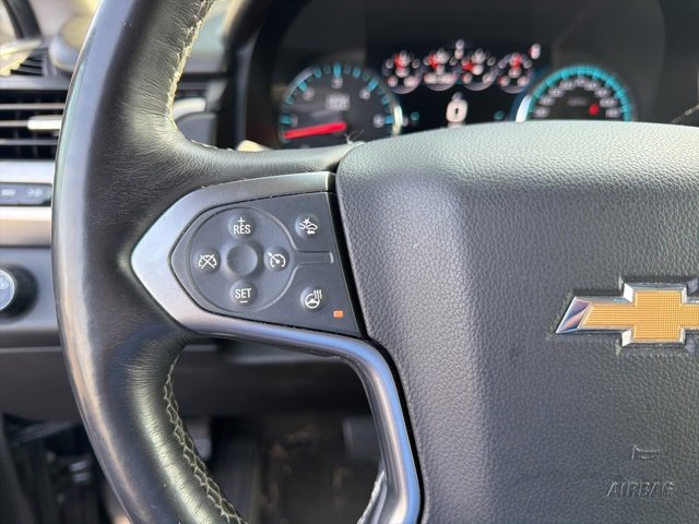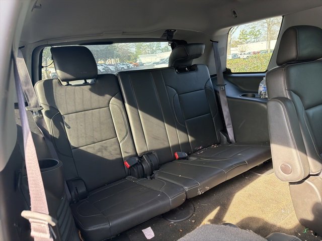 PRICED UNDER MARKET, DEALER INSPECTED AND SERVICED, Certified for extended service contract coverage, Jet Black Leather, 10 Speakers, 1st & 2nd Row Color-Keyed Carpeted Floor Mats, 3rd Row 60/40 Power Fold Split-Bench, 3rd row seats: split-bench, 4-Wheel Antilock Disc Brakes, 4-Wheel Disc Brakes, 5 12-Volt Auxiliary Power Outlets, 6-Way Power Front Passenger Seat Adjuster, ABS brakes, Adaptive suspension, Adjustable pedals, Air Conditioning, Alloy wheels, AM/FM radio: SiriusXM, Apple CarPlay, Auto High-beam Headlights, Auto-dimming door mirrors, Auto-Dimming Inside Rear-View Mirror, Auto-dimming Rear-View mirror, Automatic temperature control, Black Assist Steps w/Chrome Accent Strip, Body Security Content Theft Protection Package, Bodyside moldings, Bose Centerpoint Premium 10-Speaker Surround Sound, Brake assist, Bumpers: body-color, CD player, Color-Keyed Carpeting Floor Covering, Compass, Delay-off headlights, Driver door bin, Driver Inboard & Front Passenger Airbags, Driver vanity mirror, Dual front impact airbags, Dual front side impact airbags, Electronic Cruise Control w/Set & Resume Speed, Electronic Stability Control, Emergency communication system: OnStar, Enhanced Driver Instrument Information Display, Exterior Parking Camera Rear, Floor Console, Fog Lamps, Forward Collision Alert Sensor Indicator, Front & Rear Parking Assist, Front anti-roll bar, Front Bucket Seats, Front Center Armrest, Front dual zone A/C, Front fog lights, Front Heated Reclining Bucket Seats, Front reading lights, Front wheel independent suspension, Fully automatic headlights, Garage door transmitter, Hands Free Power Liftgate, Heated & Cooled Driver & Front Passenger Seats, Heated 2nd Row Seats, Heated door mirrors, Heated front seats, Heated Leather Wrapped Steering Wheel, Heated rear seats, Heated steering wheel, High-Intensity Discharge Headlights, Illuminated entry, Integrated Trailer Brake Controller, IntelliBeam Headlamps, Lane Departure Warning System, Lane Keep Assist, Low tire pressure warning, Magnetic Ride Control Suspension Package, Max Trailering Package, Memory seat, Memory Settings, Navigation System, Occupant sensing airbag, OnStar Basic Plan For 5 Years, Outside temperature display, Overhead airbag, Overhead console, Panic alarm, Passenger door bin, Passenger vanity mirror, Passive Entry System, Pedal memory, Perforated Leather-Appointed Seat Trim, Power door mirrors, Power driver seat, Power Liftgate, Power passenger seat, Power Release 2nd Row Bucket Seats, Power steering, Power Sunroof, Power Tilt & Telescoping Steering Column, Power windows, Power-Adjustable Accelerator & Brake Pedals, Power-Folding Heated Outside Mirrors, Preferred Equipment Group 1LZ, Premium audio system: Chevrolet MyLink, Push Button Keyless Start, Radio: Chevrolet MyLink w/Navigation/AM/FM Stereo, Rain sensing wipers, Rear air conditioning, Rear anti-roll bar, Rear Cross-Traffic Alert, Rear reading lights, Rear Seat Blu-Ray/DVD Entertainment System, Rear window defroster, Rear window wiper, Remote Keyless Entry, Remote keyless entry, Roof rack: rails only, Roof-Mounted Luggage Rack Side Rails, Safety Alert Driver Seat, Security system, Side Blind Zone Alert w/Lane Change Alert, Single-Slot CD/MP3 Player, SiriusXM Satellite Radio, Speed control, Speed-sensing steering, Split folding rear seat, Spoiler, Steering wheel memory, Steering wheel mounted audio controls, Sun, Entertainment & Destinations Package, Tachometer, Telescoping steering wheel, Theft-Deterrent Alarm System, Tilt steering wheel, Traction control, Trip computer, Turn signal indicator mirrors, Unauthorized Entry Electrical Theft Deterrent Sys., Universal Home Remote, Variably intermittent wipers, Vehicle Inclination Sensor, Vehicle Interior Movement Sensor, Ventilated front seats, Voltmeter, Wheels: 20 x 9 Polished-Aluminum, Wireless Charging, Jet Black Leather.