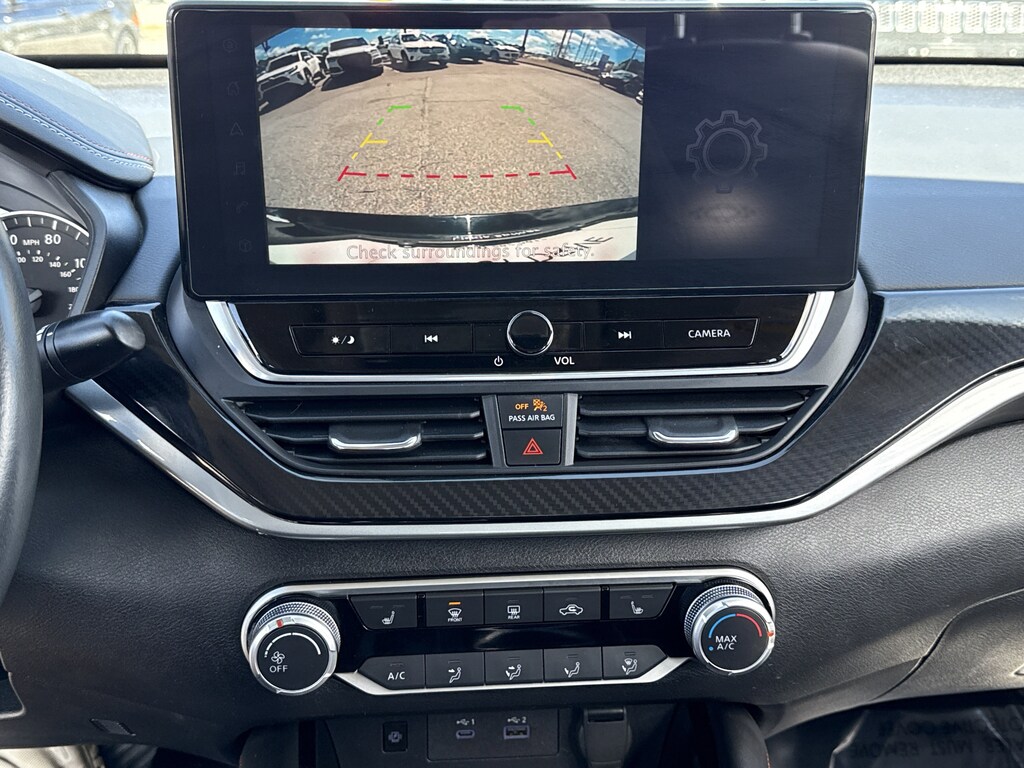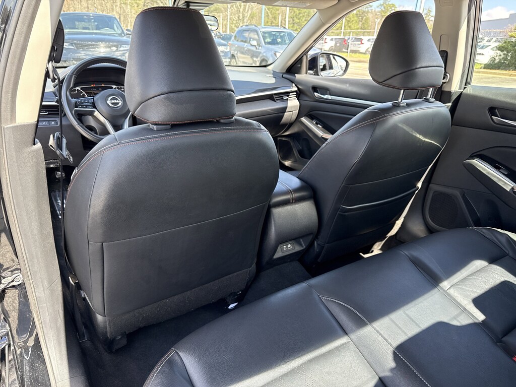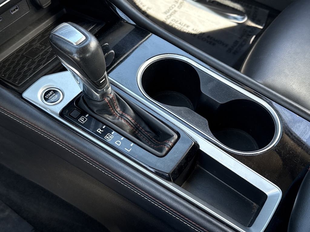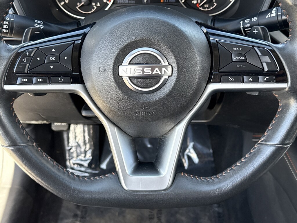 CVT with Xtronic, 2-Way Driver Power Lumbar Support, 4-Way Power Passenger Seat, 4-Wheel Disc Brakes, 6 Speakers, ABS brakes, Air Conditioning, Alloy wheels, AM/FM radio: SiriusXM, Auto High-beam Headlights, Blind Spot Warning, Body-Colored Rear Spoiler, Body-Colored Splash Guards, Brake assist, Bumpers: body-color, Dash Cam - Dual Camera Drive Recorder, Delay-off headlights, Driver door bin, Driver vanity mirror, Dual front impact airbags, Dual front side impact airbags, Electronic Stability Control, Four wheel independent suspension, Front anti-roll bar, Front Bucket Seats, Front Center Armrest, Front reading lights, Fully automatic headlights, Heated Front Seats, Illuminated entry, Knee airbag, Leather Shift Knob, Leather-Appointed Seat Trim, Low tire pressure warning, NissanConnect, NissanConnect featuring Apple CarPlay, Occupant sensing airbag, Outside temperature display, Overhead airbag, Overhead console, Panic alarm, Passenger door bin, Passenger vanity mirror, Power door mirrors, Power driver seat, Power steering, Power windows, Premium Sport Interior Finishers, Radio data system, Radio: AM/FM Audio System, Rear anti-roll bar, Rear Parking Sensors, Rear reading lights, Rear seat center armrest, Rear side impact airbag, Rear window defroster, Remote keyless entry, Security system, Single Panel Moonroof, Speed control, Speed-sensing steering, Speed-Sensitive Wipers, Split folding rear seat, Sport Seat Trim, SR Floor Mats/Trunk Mat/Hideaway Nets, SR Premium Package, Steering wheel mounted audio controls, Tachometer, Telescoping steering wheel, Tilt steering wheel, Traction control, Trip computer, Trunk Organizer Tray, Unique Sport Seats, Variably intermittent wipers, Wheels: 19" Sport Alloy, CVT with Xtronic.
