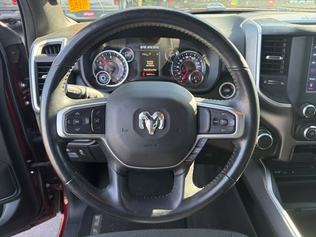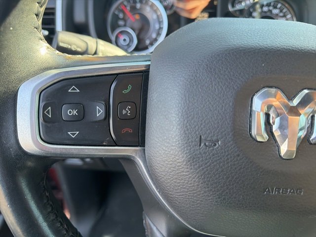 PRICED UNDER MARKET, DEALER INSPECTED AND SERVICED, Certified for extended service contract coverage, 3 Rear Seat Head Restraints, 4 Way Front Headrests, 4-Wheel Disc Brakes, 48V Belt Starter Generator, 6 Speakers, ABS brakes, Air Conditioning, Alloy wheels, AM/FM radio, Anti-Spin Differential Rear Axle, Auto-Dimming Rear-View Mirror, Big Horn IP Badge, Big Horn Level 1 Equipment Group, Brake assist, Bumpers: chrome, Class IV Receiver Hitch, Cloth Bench Seat, Cluster 3.5 TFT Color Display, Compass, Delay-off headlights, Driver door bin, Dual front impact airbags, Dual front side impact airbags, Electronic Stability Control, Exterior Mirrors w/Supplemental Signals, Foam Bottle Insert (Door Trim Panel), Front anti-roll bar, Front Center Armrest w/Storage, Front fog lights, Front reading lights, Front Seat Back Map Pockets, Front wheel independent suspension, Fully automatic headlights, Glove Box Lamp, GPS Antenna Input, Heated door mirrors, Illuminated entry, Leather steering wheel, Low tire pressure warning, Occupant sensing airbag, Outside temperature display, Overhead airbag, Overhead console, Panic alarm, ParkView Rear Back-Up Camera, Passenger door bin, Passenger vanity mirror, Power 4-Way Driver Lumbar Adjust, Power 8-Way Driver Seat, Power Adjustable Pedals, Power door mirrors, Power Heated Fold Away Mirrors, Power steering, Power windows, Quick Order Package 25Z Big Horn/Lone Star, Radio data system, Radio: Uconnect 3 w/5 Display, Radio: Uconnect 4 w/8.4 Display, Rear 60/40 Folding Seat, Rear anti-roll bar, Rear Dome w/On/Off Switch Lamp, Rear Power Sliding Window, Rear seat center armrest, Rear step bumper, Rear Window Defroster, Remote keyless entry, Single Disc Remote CD Player, SiriusXM Satellite Radio, Speed control, Split folding rear seat, Steering Wheel Mounted Audio Controls, Sun Visors w/Illuminated Vanity Mirrors, Tachometer, Telescoping steering wheel, Tilt steering wheel, Traction control, Trip computer, Universal Garage Door Opener, Variably intermittent wipers, Voltmeter, Wheels: 18 x 8, Wheels: 20 x 9 Aluminum Chrome Clad.