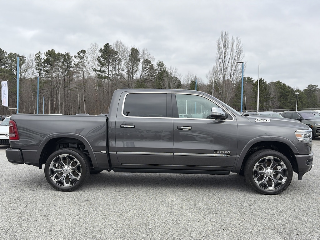PRICED UNDER MARKET, DEALER INSPECTED AND SERVICED, Certified for extended service contract coverage, 1-Yr SiriusXM Guardian Trial, 10 Speakers, 3.21 Rear Axle Ratio, 4-Wheel Disc Brakes, 48V Belt Starter Generator, 4G LTE Wi-Fi Hot Spot, ABS brakes, Adaptive Cruise Control w/Stop & Go, Adjustable pedals, Air Conditioning, Alloy wheels, AM/FM radio: SiriusXM with 360L, Apple CarPlay, Apple CarPlay/Android Auto, Audio memory, Auto High-beam Headlights, Auto-dimming door mirrors, Auto-dimming Rear-View mirror, Auto-leveling suspension, Automatic temperature control, Bed Utility Group, Body Color Bumper Group, Body Color Front Bumper, Body Color Rear Bumper w/Step Pads, Bodyside moldings, Brake assist, Bumpers: chrome, Chrome Exterior Mirrors, Compass, Delay-off headlights, Disassociated Touchscreen Display, Dome Dual LED Reading Lamp, Driver door bin, Driver vanity mirror, Dual front impact airbags, Dual front side impact airbags, Dual-Pane Panoramic Sunroof, Electronic Stability Control, Emergency communication system: SiriusXM Guardian, For More Info, Call 800-643-2112, Front anti-roll bar, Front Bucket Seats, Front Center Armrest w/Storage, Front dual zone A/C, Front fog lights, Front License Plate Bracket, Front reading lights, Front wheel independent suspension, Fully automatic headlights, Garage door transmitter, Genuine wood console insert, Genuine wood dashboard insert, Genuine wood door panel insert, Google Android Auto, GPS Antenna Input, GPS Navigation, HD Radio, Heads-Up Display, Heated door mirrors, Heated front seats, Heated rear seats, Heated steering wheel, Illuminated entry, Integrated Center Stack Radio, Integrated Voice Command w/Bluetooth, Lane Keep Assist, Leather steering wheel, LED CHMSL Lamp, LED Dome/Reading Lamp, Limited Level 1 Equipment Group, Low tire pressure warning, Manufacturer's Statement of Origin, Memory seat, MOPAR 4 Adjustable Cargo Tie-Down Hooks, MOPAR Deployable Bed Step, Navigation System, Occupant sensing airbag, Outside temperature display, Overhead airbag, Overhead console, Panic alarm, Parallel & Perp Park Assist w/Stop, ParkView Rear Back-Up Camera, Passenger door bin, Passenger vanity mirror, Pedal memory, Pedestrian Emergency Braking, Pick-Up Box Lighting, Power door mirrors, Power driver seat, Power passenger seat, Power steering, Power windows, Premium Leather Trimmed Bucket Seats, Protection Group, Quick Order Package 27M Limited, Radio data system, Radio: Uconnect 12 w/Navigation, Rain sensing wipers, Rear anti-roll bar, Rear seat center armrest, Rear step bumper, Rear window defroster, Rearview Autodim Digital Display Mirror, Remote keyless entry, Security system, SiriusXM Radio Service, SiriusXM Satellite Radio, SiriusXM Traffic Plus, SiriusXM Travel Link, Speed control, Split folding rear seat, Steering wheel mounted audio controls, Surround View Camera System, Tachometer, Technology Group, Telescoping steering wheel, Tilt steering wheel, Traction control, Trailer Brake Control, Trip computer, Turn signal indicator mirrors, USB Host Flip, Variably intermittent wipers, Ventilated front seats, Ventilated Rear Seats, Voltmeter, Wheels: 20" x 9" Polished w/Inserts, Wheels: 22" x 9" Polish/Painted w/Inserts.