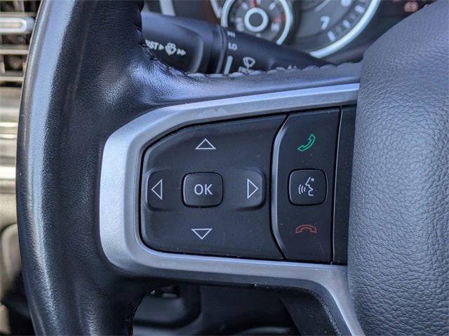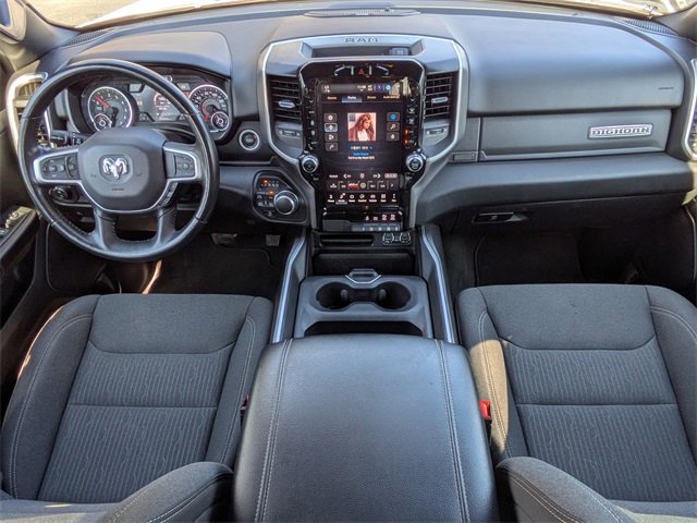 PRICED UNDER MARKET, DEALER INSPECTED AND SERVICED, Certified for extended service contract coverage, 115V Auxiliary Power Outlet, 12 Touchscreen Display, 2nd Row In Floor Storage Bins, 3 Rear Seat Head Restraints, 3.21 Rear Axle Ratio, 4 Way Front Headrests, 4-Wheel Disc Brakes, 400W Inverter, 48V Belt Starter Generator, 4G LTE Wi-Fi Hot Spot, 6 Speakers, 9 Amplified Speakers w/Subwoofer, ABS brakes, Air Conditioning, Air Conditioning ATC w/Dual Zone Control, All R1 High Radios, All Radio Equipped Vehicles, Alloy wheels, AM/FM radio, Apple CarPlay, Auto-Dimming Exterior Driver Mirror, Auto-Dimming Rear-View Mirror, Big Horn Badge, Big Horn Level B Equipment Group, Black Exterior Mirrors, Black Premium Power Mirrors, Brake assist, Bumpers: chrome, Class IV Receiver Hitch, Cloth Bench Seat, Cluster 7.0 TFT Color Display, Compass, Connected Travel & Traffic Services, Connectivity - US/Canada, Convex Wide-Angle Exterior Mirror Insert, Delay-off headlights, Disassociated Touchscreen Display, Driver door bin, Dual front impact airbags, Dual front side impact airbags, Electronic Stability Control, Emergency communication system: SiriusXM Guardian, Exterior Mirrors Courtesy Lamps, Exterior Mirrors w/Heating Element, Exterior Mirrors w/Supplemental Signals, For Details, Visit DriveUconnect.com, For More Info, Call 800-643-2112, Front anti-roll bar, Front Center Armrest w/Storage, Front Fog Lamps, Front License Plate Bracket, Front reading lights, Front Seat Back Map Pockets, Front wheel independent suspension, Fully automatic headlights, Global Telematics Box Module (TBM), Glove Box Lamp, Google Android Auto, GPS Antenna Input, GPS Navigation, HD Radio, Heated door mirrors, Heated Front Seats, Heated Steering Wheel, Illuminated entry, Integrated Center Stack Radio, Integrated Voice Command w/Bluetooth, Leather steering wheel, LED Footwell Lighting, Low tire pressure warning, Media Hub w/2 Charge Only USBs, Occupant sensing airbag, Outside temperature display, Overhead airbag, Overhead console, Panic alarm, ParkSense Front/Rear Park Assist w/Stop, ParkView Rear Back-Up Camera, Passenger door bin, Passenger vanity mirror, Power 2-Way Driver Lumbar Adjust, Power 8-Way Driver Seat, Power Adjustable Pedals, Power door mirrors, Power steering, Power windows, Power-Folding Mirrors, Quick Order Package 27Z Big Horn, Radio data system, Radio: Uconnect 3 w/5 Display, Radio: Uconnect 5 Nav w/12.0 Display, RAM Grille Badge - Chrome, Rear 60/40 Folding Seat, Rear anti-roll bar, Rear Dome w/On/Off Switch Lamp, Rear Power Sliding Window, Rear seat center armrest, Rear step bumper, Rear Window Defroster, Remote keyless entry, Remote Start System, Security Alarm, SiriusXM Radio Service, SiriusXM Satellite Radio, SiriusXM w/360L, Speed control, Split folding rear seat, Steering wheel mounted audio controls, Sun Visors w/Illuminated Vanity Mirrors, Tachometer, Telescoping steering wheel, Tilt steering wheel, Traction control, Trip computer, Universal Garage Door Opener, USB Host Flip, Variably intermittent wipers, Voltmeter, Wheel to Wheel Side Steps, Wheels: 18 x 8 Cast-Aluminum Painted, 115V Auxiliary Power Outlet, 12 Touchscreen Display, 2nd Row In Floor Storage Bins, 3 Rear Seat Head Restraints, 3.21 Rear Axle Ratio, 4 Way Front Headrests, 4-Wheel Disc Brakes, 400W Inverter, 48V Belt Starter Generator, 4G LTE Wi-Fi Hot Spot, 6 Speakers, 9 Amplified Speakers w/Subwoofer, ABS brakes, Air Conditioning, Air Conditioning ATC w/Dual Zone Control, All R1 High Radios, All Radio Equipped Vehicles, Alloy wheels, AM/FM radio, Apple CarPlay, Auto-Dimming Exterior Driver Mirror, Auto-Dimming Rear-View Mirror, Big Horn Badge, Big Horn Level B Equipment Group, Black Exterior Mirrors, Black Premium Power Mirrors, Brake assist, Bumpers: chrome, Class IV Receiver Hitch,