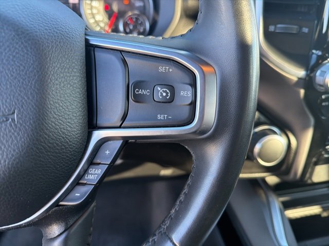PRICED UNDER MARKET, DEALER INSPECTED AND SERVICED, Certified for extended service contract coverage, 115V Auxiliary Power Outlet, 2nd Row In Floor Storage Bins, 3 Rear Seat Head Restraints, 3.21 Rear Axle Ratio, 4 Way Front Headrests, 4-Wheel Disc Brakes, 400W Inverter, 48V Belt Starter Generator, 4G LTE Wi-Fi Hot Spot, 6 Speakers, 9 Amplified Speakers w/Subwoofer, ABS brakes, Accent Color Door Handles, Accent Color Premium Power Mirrors, Active Noise Control System, Air Conditioning, Air Conditioning ATC w/Dual Zone Control, All R1 High Radios, All Radio Equipped Vehicles, Alloy wheels, AM/FM radio, Anti-Spin Differential Rear Axle, Apple CarPlay, Auto-Dimming Exterior Driver Mirror, Auto-Dimming Rear-View Mirror, Big Horn Badge, Big Horn Level B Equipment Group, Black Exterior Truck Badging, Black Headlamp Bezels, Black Interior Accents, Black Painted Exterior Mirrors Caps, Black Premium Power Mirrors, Body Color Front Bumper, Body Color Rear Bumper w/Step Pads, Brake assist, Bucket Seats, Bumpers: chrome, Class IV Receiver Hitch, Cloth Bench Seat, Cluster 7.0 TFT Color Display, Compass, Connected Travel & Traffic Services, Connectivity - US/Canada, Convex Wide-Angle Exterior Mirror Insert, Delay-off headlights, Deluxe Cloth Bucket Seats, Driver door bin, Dual Exhaust w/Black Tips, Dual front impact airbags, Dual front side impact airbags, Dual Rear Exhaust w/Bright Tips, Electronic Stability Control, Emergency communication system: RAM Connect, Exterior Mirrors Courtesy Lamps, Exterior Mirrors w/Heating Element, Exterior Mirrors w/Supplemental Signals, For Details, Visit DriveUconnect.com, For More Info, Call 800-643-2112, Front anti-roll bar, Front Center Armrest w/Storage, Front Fog Lamps, Front License Plate Bracket, Front reading lights, Front Seat Back Map Pockets, Front wheel independent suspension, Full Length Floor Console, Fully automatic headlights, Global Telematics Box Module (TBM), Glove Box Lamp, Google Android Auto, GPS Navigation, Grille Surround 1 Black Texture 2 Black, HD Radio, Heated door mirrors, Heated Front Seats, Heated Steering Wheel, Heavy-Duty Engine Cooling, HEMI Badge, Illuminated entry, Integrated Voice Command w/Bluetooth, Leather steering wheel, LED Footwell Lighting, Low tire pressure warning, Manual Adjust 4-Way Front Passenger Seat, Media Hub w/2 Charge Only USBs, Night Edition, Occupant sensing airbag, Outside temperature display, Overhead airbag, Overhead console, Panic alarm, ParkSense Front/Rear Park Assist w/Stop, ParkView Rear Back-Up Camera, Passenger door bin, Passenger vanity mirror, Power 2-Way Driver Lumbar Adjust, Power 8-Way Driver Seat, Power Adjustable Pedals, Power door mirrors, Power steering, Power windows, Power-Folding Mirrors, Quick Order Package 27Z Big Horn, Radio data system, Radio: Uconnect 3 w/5 Display, Radio: Uconnect 5 Nav w/12.0 Display, RAM Grille Badge - Black, RAM Grille Badge - Chrome, Rear 60/40 Folding Seat, Rear anti-roll bar, Rear Center Armrest, Rear Dome w/On/Off Switch Lamp, Rear Power Sliding Window, Rear seat center armrest, Rear step bumper, Rear Window Defroster, Remote keyless entry, Remote Start System, Security Alarm, SiriusXM Radio Service, SiriusXM Satellite Radio, SiriusXM w/360L, Speed control, Split folding rear seat, Steering wheel mounted audio controls, Sun Visors w/Illuminated Vanity Mirrors, Tachometer, Telescoping steering wheel, Tilt steering wheel, Traction control, Trip computer, Universal Garage Door Opener, USB Host Flip, Variably intermittent wipers, Voltmeter, Wheels: 20 x 9.0 Premium Paint/Polished, 115V Auxiliary Power Outlet, 2nd Row In Floor Storage Bins, 3 Rear Seat Head Restraints, 3.21 Rear Axle Ratio, 4 Way Front Headrests, 4-Wheel Disc Brakes, 400W Inverter, 48V Belt Starter Generator, 4G LTE Wi-Fi Hot Spot