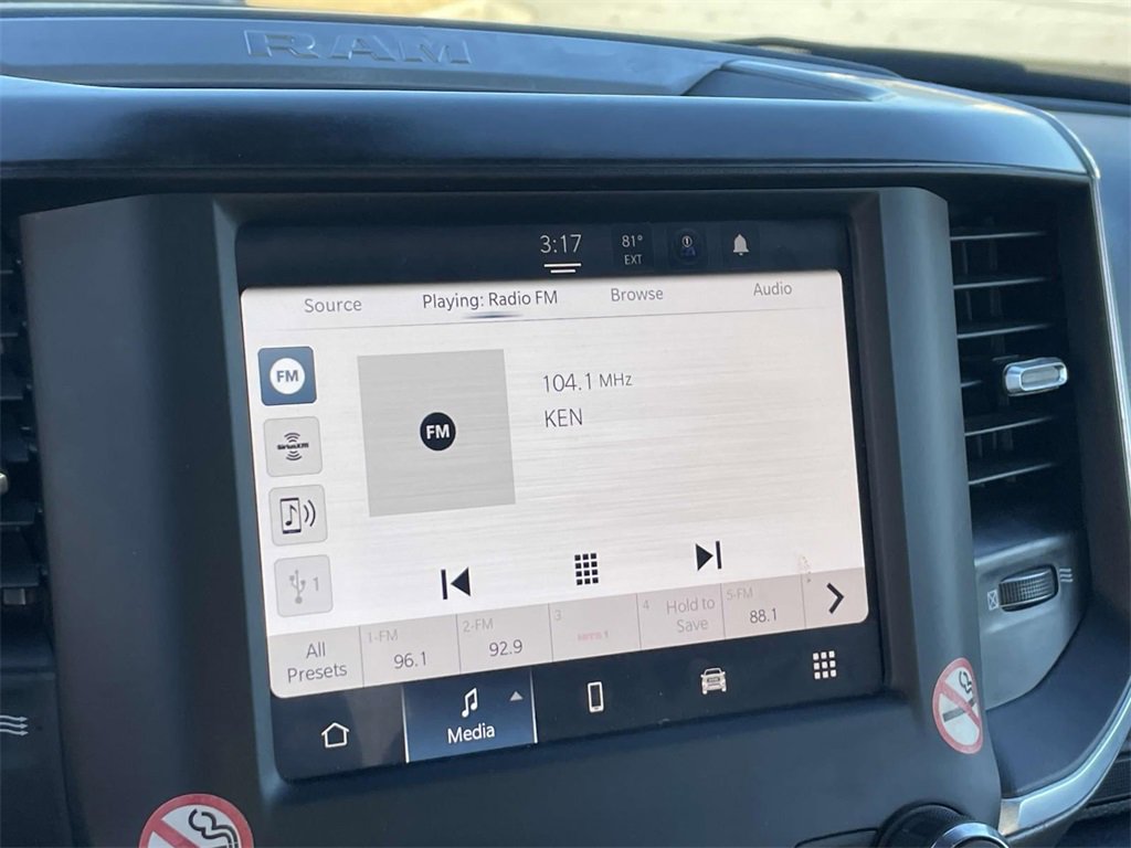PRICED UNDER MARKET, DEALER INSPECTED AND SERVICED, Certified for extended service contract coverage, 2 Way Rear Headrest Seat, 2nd Row In Floor Storage Bins, 3.73 Axle Ratio, 4 Way Front Headrests, 4-Wheel Disc Brakes, 40/20/40 Split Bench Seat, 4G LTE Wi-Fi Hot Spot, 6 Speakers, 8.4" Touchscreen Display, ABS brakes, Active Noise Control System, Air Conditioning, Apple CarPlay, Auto Power-Folding Mirrors, Big Horn IP Badge, Black Exterior Mirrors, Bluetooth Handsfree Phone & Audio, Brake assist, Bumpers: chrome, Center Hub, Center Stack Storage Drawer, Chrome Flat Cab-Length Side Steps, Cloth 40/20/40 Bench Seat, Compass, Connectivity - US/Canada, Delay-off headlights, Driver door bin, Dual front impact airbags, Dual front side impact airbags, Dual Glove Boxes, Electronic Stability Control, Electronically Controlled Throttle, Emergency communication system: SiriusXM Guardian, Exterior Mirrors Courtesy Lamps, Exterior Mirrors w/Heating Element, Exterior Mirrors w/Supplemental Signals, Foam Bottle Insert (Door Trim Panel), Footwell Courtesy Lamp, For Details, Visit DriveUconnect.com, For More Info, Call 800-643-2112, Forward & Reverse Utility Lights, Front anti-roll bar, Front Armrest w/Cupholders, Front Center Armrest w/Storage, Front Center Seat Cushion Storage, Front Fog Lamps, Front License Plate Bracket, Front reading lights, Front Seat Back Map Pockets, Fully automatic headlights, Global Telematics Box Module (TBM), Glove Box Lamp, Google Android Auto, GPS Antenna Input, Heated door mirrors, Illuminated entry, Integrated Center Stack Radio, Integrated Voice Command w/Bluetooth, Leather Wrapped Steering Wheel, Level 1 Equipment Group, Locking Lower Glove Box, Low tire pressure warning, Manual Adjust 4-Way Driver Seat, Manual Adjust 4-Way Front Passenger Seat, Manufacturer's Statement of Origin, Mirror Running Lights, Occupant sensing airbag, Outside temperature display, Overhead airbag, Overhead console, Panic alarm, ParkView Rear Back-Up Camera, Passenger door bin, Passenger vanity mirror, Power 2-Way Driver Lumbar Adjust, Power Adjust 8-Way Driver Seat, Power Adjust Mirrors, Power Adjustable Convex Aux Mirrors, Power door mirrors, Power Heated Fold Telescope Mirrors, Power steering, Power Telescoping Mirrors, Power windows, Premium Cloth 40/20/40 Bench Seat (DISC), Quick Order Package 2GZ Big Horn, Radio data system, Radio: Uconnect 3 w/5" Display, Radio: Uconnect 5 W w/8.4" Display, Rear 60/40 Folding Seat, Rear anti-roll bar, Rear Dome w/On/Off Switch Lamp, Rear Folding Seat, Rear seat center armrest, Rear step bumper, Remote keyless entry, Remote USB Port - Charge Only, Selectable Tire Fill Alert, SiriusXM Radio Service, SiriusXM Satellite Radio, Speed control, Steering Wheel Mounted Audio Controls, Storage Tray, Tachometer, Tilt steering wheel, Tip Start, Tow Hooks, Traction control, Trip computer, Turn signal indicator mirrors, Variably intermittent wipers, Voltmeter, Wheels: 18" x 8.0" Polished Aluminum, Wheels: 18" x 8.0" Steel Chrome Clad.