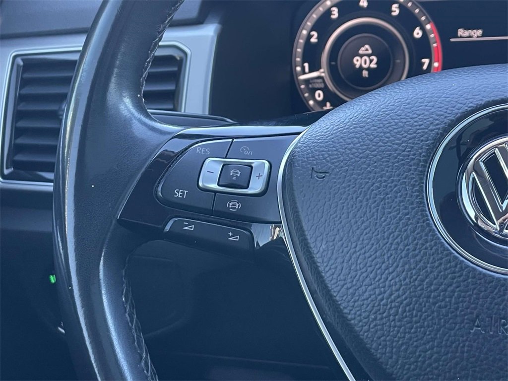 PRICED UNDER MARKET, DEALER INSPECTED AND SERVICED, Certified for extended service contract coverage, 18" 5-Spoke Wheels, 20" Silver Triple 5-Spoke Wheels, 3.60 Axle Ratio, 3rd row seats: split-bench, 4-Wheel Disc Brakes, 8 Speakers, ABS brakes, Active Blind Spot Monitor, Air Conditioning, Alloy wheels, AM/FM radio: SiriusXM, Auto-dimming Rear-View mirror, Automatic temperature control, Brake assist, Bumpers: body-color, Compass, Delay-off headlights, Driver door bin, Driver vanity mirror, Dual front impact airbags, Dual front side impact airbags, Electronic Stability Control, Emergency communication system: VW Car-Net services (capabilities require enrollment or subscription), Exterior Parking Camera Rear, Forward collision: FCW w/Autonomous Emergency Braking mitigation, Four wheel independent suspension, Front anti-roll bar, Front Bucket Seats, Front Center Armrest, Front dual zone A/C, Front fog lights, Front reading lights, Garage door transmitter: HomeLink, Heated Comfort Front Bucket Seats, Heated door mirrors, Heated front seats, Heated steering wheel, Illuminated entry, Low tire pressure warning, Luggage Net, Memory seat, Navigation System, Occupant sensing airbag, Outside temperature display, Overhead airbag, Overhead console, Panic alarm, Passenger door bin, Passenger vanity mirror, Power door mirrors, Power driver seat, Power Liftgate, Power moonroof, Power passenger seat, Power steering, Power windows, Radio data system, Radio: Discover Media 8.0" Touchscreen w/Nav, Rain sensing wipers, Rear air conditioning, Rear anti-roll bar, Rear reading lights, Rear seat center armrest, Rear window defroster, Rear window wiper, Remote CD player, Remote keyless entry, Roadside Assistance Kit, Roof rack: rails only, Security system, Speed control, Speed-sensing steering, Split folding rear seat, Spoiler, Standard Suspension, Steering wheel mounted audio controls, Tachometer, Telescoping steering wheel, Tilt steering wheel, Traction control, Trip computer, Turn signal indicator mirrors, V-Tex Leatherette Seating Surfaces, Variably intermittent wipers, Wheels: 20" Silver Triple 5-Spoke Alloy.