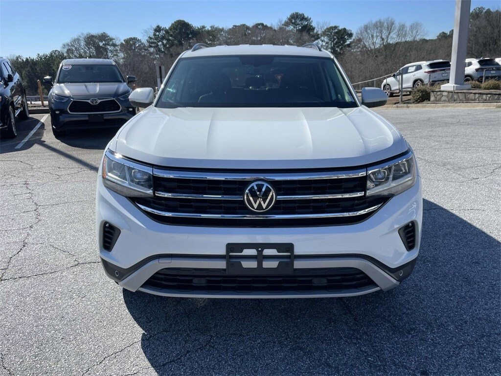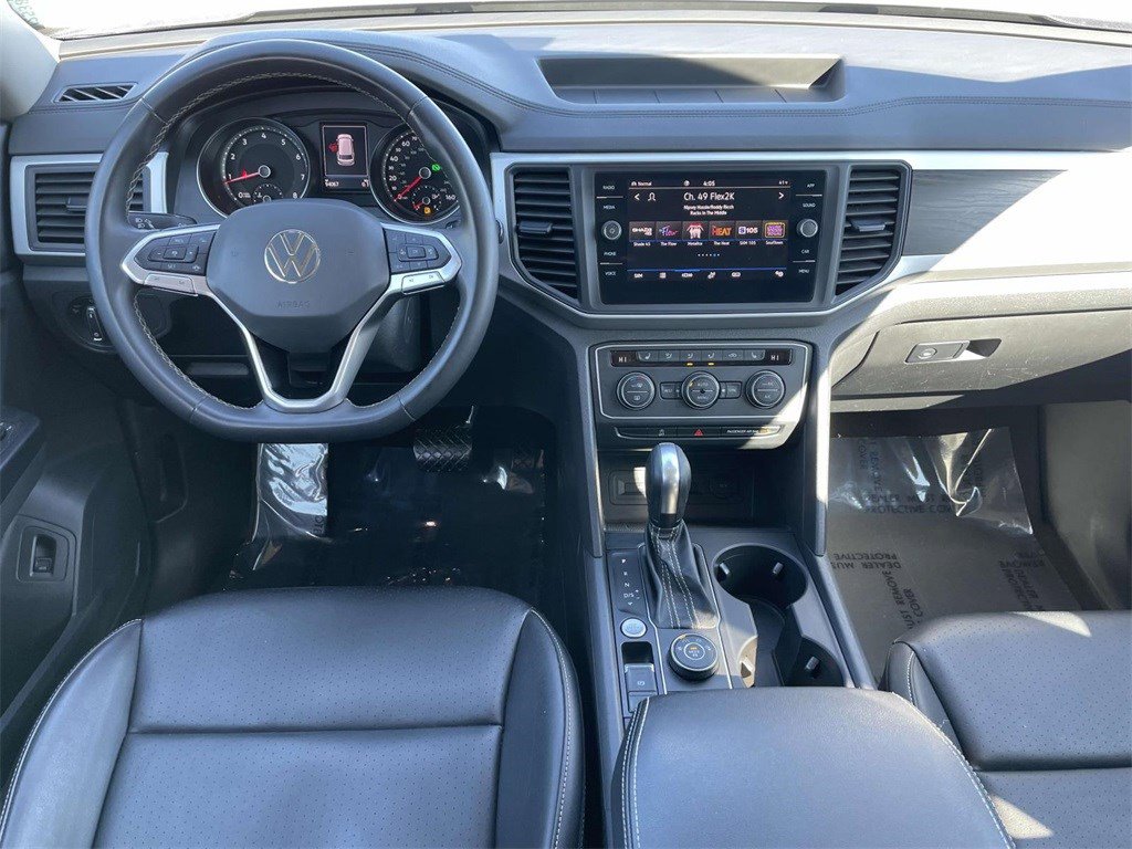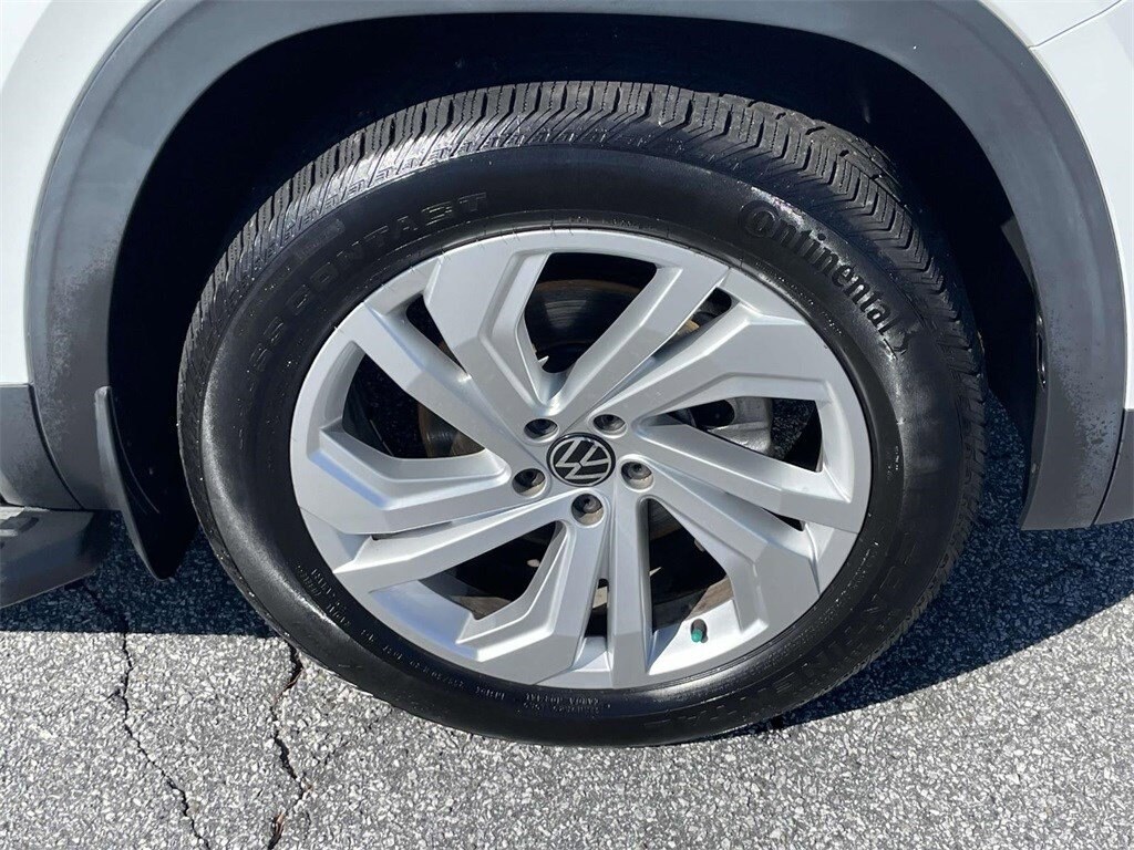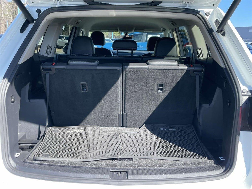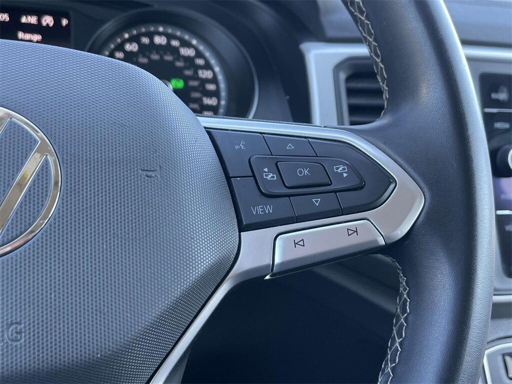 PRICED UNDER MARKET, DEALER INSPECTED AND SERVICED, Certified for extended service contract coverage, 3.60 Axle Ratio, 3rd row seats: split-bench, 4-Wheel Disc Brakes, 6 Speakers, ABS brakes, Air Conditioning, Alloy wheels, Auto-dimming Rear-View mirror, Automatic temperature control, Brake assist, Bumpers: body-color, Compass, Delay-off headlights, Driver door bin, Driver vanity mirror, Dual front impact airbags, Dual front side impact airbags, Electronic Stability Control, Emergency communication system: VW Car-Net services (capabilities require enrollment or subscription), Exterior Parking Camera Rear, Forward collision: FCW w/Autonomous Emergency Braking mitigation, Four wheel independent suspension, Front anti-roll bar, Front Bucket Seats, Front Center Armrest, Front dual zone A/C, Front fog lights, Front reading lights, Fully automatic headlights, Heated Comfort Front Bucket Seats, Heated door mirrors, Heated front seats, Illuminated entry, Leather Shift Knob, Low tire pressure warning, Occupant sensing airbag, Outside temperature display, Overhead airbag, Overhead console, Panic alarm, Passenger door bin, Passenger vanity mirror, Perforated V-Tex Leatherette Seating Surfaces, Power door mirrors, Power driver seat, Power Liftgate, Power steering, Power windows, Radio data system, Rain sensing wipers, Rear air conditioning, Rear anti-roll bar, Rear reading lights, Rear seat center armrest, Rear window defroster, Rear window wiper, Remote keyless entry, Roof rack: rails only, Security system, Speed control, Speed-sensing steering, Split folding rear seat, Spoiler, Standard Suspension, Steering wheel mounted audio controls, Tachometer, Telescoping steering wheel, Tilt steering wheel, Traction control, Trip computer, Turn signal indicator mirrors, Variably intermittent wipers, Wheels: 20" 5-Spoke Silver Alloy.