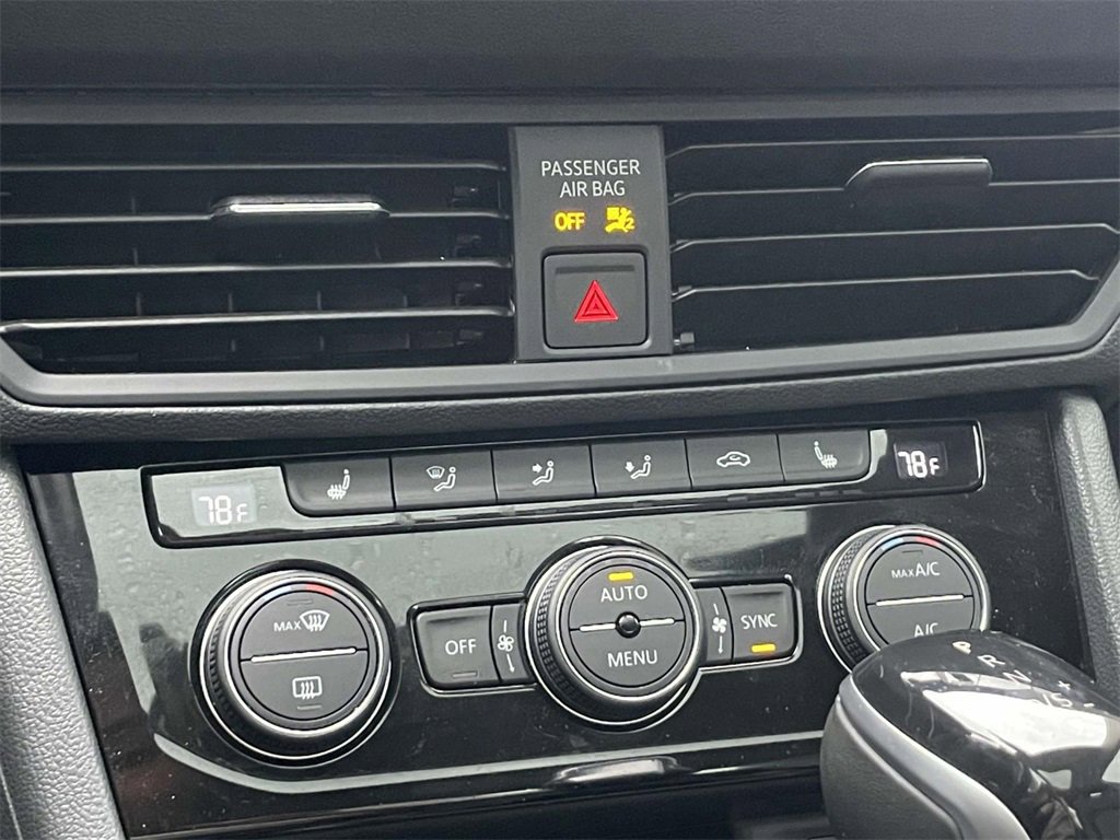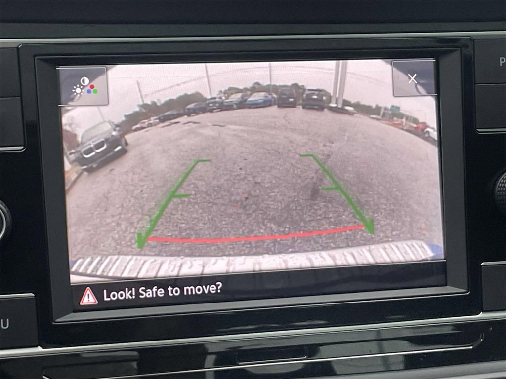 PRICED UNDER MARKET, DEALER INSPECTED AND SERVICED, Certified for extended service contract coverage, 4 Speakers, 4-Wheel Disc Brakes, ABS brakes, Active Blind Spot Monitor, Air Conditioning, Alloy wheels, AM/FM radio, Auto-dimming Rear-View mirror, Automatic temperature control, Brake assist, Bumpers: body-color, Delay-off headlights, Driver door bin, Driver vanity mirror, Dual front impact airbags, Dual front side impact airbags, Electronic Stability Control, Emergency communication system: VW Car-Net Safe & Secure 5-year, Exterior Parking Camera Rear, Front anti-roll bar, Front Bucket Seats, Front Center Armrest, Front dual zone A/C, Front wheel independent suspension, Fully automatic headlights, Heated door mirrors, Heated Front Comfort Sport Seats, Heated front seats, Illuminated entry, Leather Shift Knob, Low tire pressure warning, Occupant sensing airbag, Outside temperature display, Overhead airbag, Overhead console, Panic alarm, Passenger door bin, Passenger vanity mirror, Power door mirrors, Power driver seat, Power steering, Power windows, Radio data system, Radio: MIB3 Composition Color w/6.5" Touchscreen, Rain sensing wipers, Rear anti-roll bar, Rear reading lights, Rear seat center armrest, Rear window defroster, Remote keyless entry, Speed control, Speed-sensing steering, Split folding rear seat, Steering wheel mounted audio controls, Tachometer, Telescoping steering wheel, Tilt steering wheel, Traction control, Trip computer, V-Tex Leatherette Seat Trim, Variably intermittent wipers, Wheels: 17" Twin 5-Spoke Silver Painted Alloy.